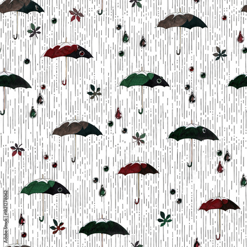 Seamless pattern with minimalist leaves and berries in symmetry