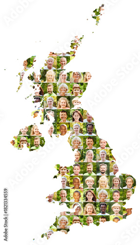 Umriss von Großbritannien mit Portraits vielfältiger Geschäftsleute