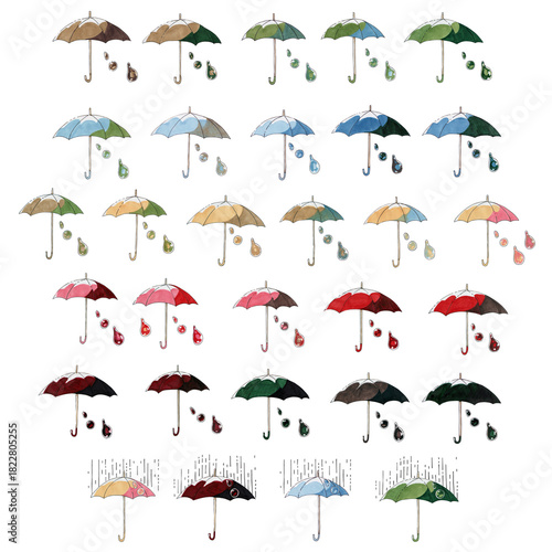 Vibrant multi-colored beach umbrella isolated on white background for summer vacation