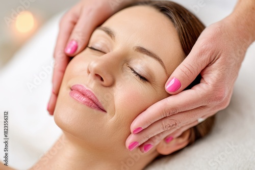 Serene beauty spa concept with a young woman enjoying a facial treatment