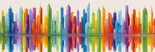 Colorful Cityscape Painting With Reflections Abstract Skyline Art With Buildings Modern Architecture Illustration
