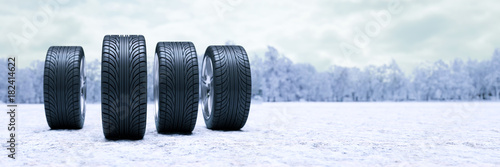 Winterreifen im Schnee im Winter als Panorama