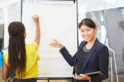 Panorama aus Silhouetten von Geschäftsleuten vor bunten Business Portraits