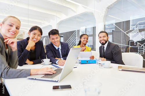 Panorama aus Silhouetten von Geschäftsleuten vor bunten Business Portraits