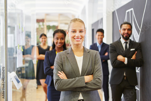 Erfolgreiche Geschäftsfrau vor ihrem Team