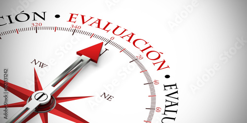 Kompass zeigt auf das Wort Evaluación / Bewertung