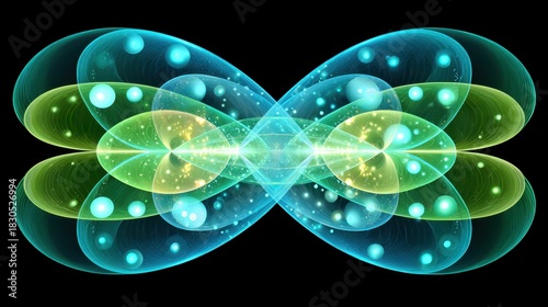 Light Forms With Spheres On Black Background Blue Green And Yellow Glowing Shapes For Modern Designs And Presentations