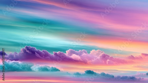Colorful Sky With Clouds Background Pastel Colors Pink Purple Blue Turquoise Orange Gradient Dreamy Abstract Nature Landscape