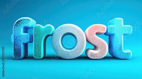 Frost Word Rendered In 3D With Icy Texture On Blue Background For Winter Holiday Season And Cold Weather Concepts And Designs