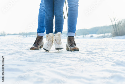 Kind macht erste Schritte auf Schlittschuhen