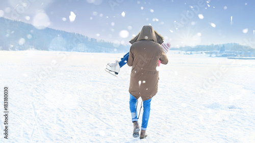 Familie hat Spaß beim Schlitten fahren und rodeln