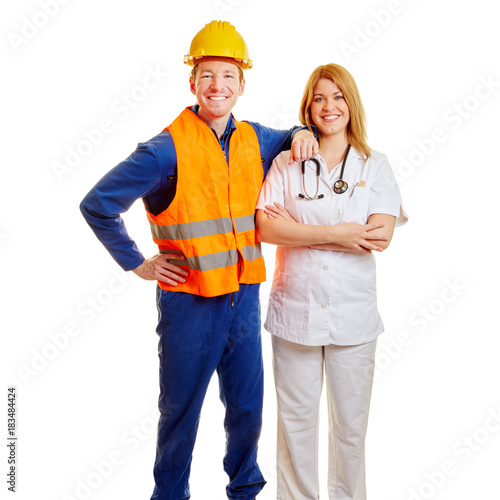 Arbeiter und Ärztin als Team zusammen