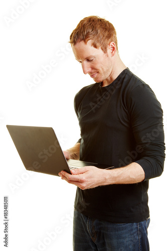 Hand mit Lupe sucht in Portraits als Umfrage und Marktforschung Konzept