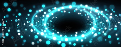 Abstract blue glowing ring with light dots forming a futuristic hole background