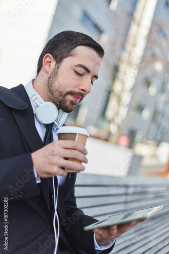 Nachdenklicher Geschäftsmann trinkt Kaffee