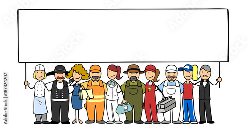 Gruppe Leute mit verschiedenen Berufen hält Schild