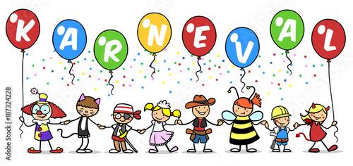 Gruppe Kinder beim Karneval feiern im Kostüm