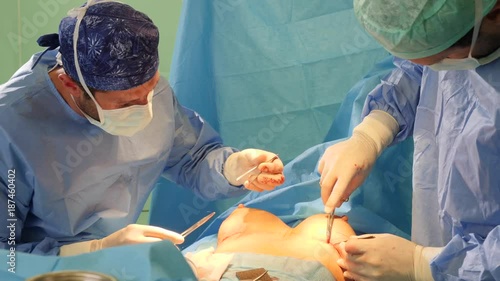 Ärzteteam der Chirurgie arbeitet konzentriert zusammen