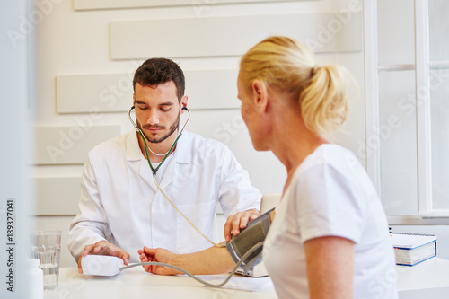 Arzt misst den Blutdruck einer Patientin
