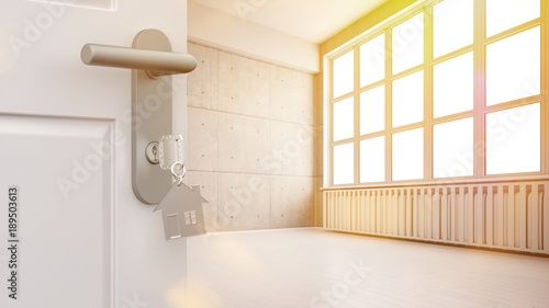 Wand im Zimmer einer leeren Wohnung mit Balkon