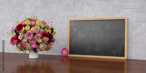Leere Tafel neben Blumenstrauß als Hintergrund