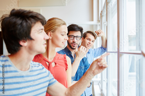 Panorama aus Silhouetten von Geschäftsleuten vor bunten Business Portraits