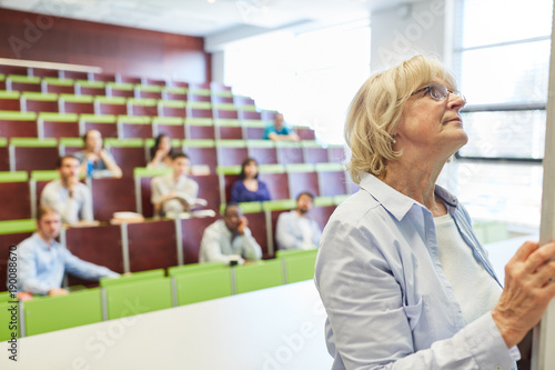 Ältere Frau als Lehrer an der Uni