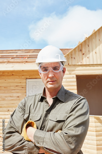 Bauarbeiter mit Schutzbrille und Schutzhelm