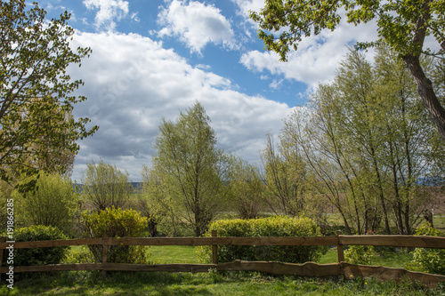 Grüner Park mit Wiese und Bäumen als Panorama Header