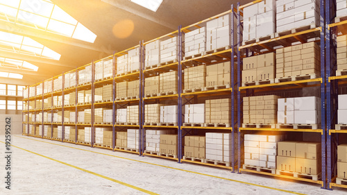 Helle Lagerhalle oder Warenhaus mit Boxen
