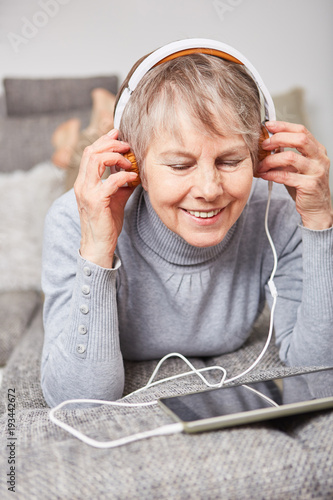 Frau als Senior hört zur Entspannung Musik
