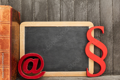 Internetrecht Konzept mit Tafel und Zeichen für Email