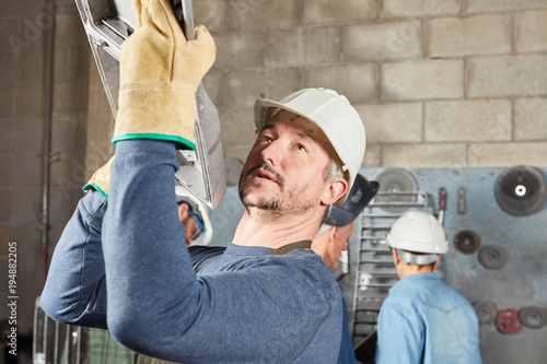 Metallarbeiter hebt ein Bauteil in einer Fabrik