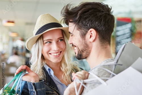 Junges Paar im Jeans Mode Shop beim Einkaufen