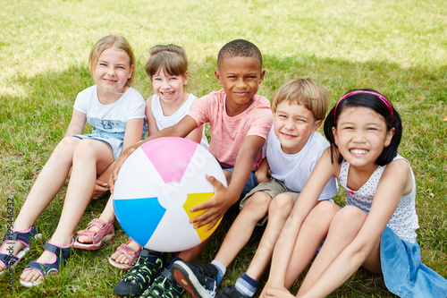 Handschlag vor vielen bunten Portraits einer Gesellschaft als Konzept für Miteinander