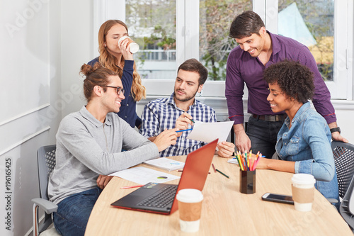 Gruppe Studenten diskutiert über Business Strategie
