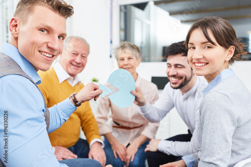 Pfeil vor Mitarbeiter Portraits als Unternehmenswachstum Konzept