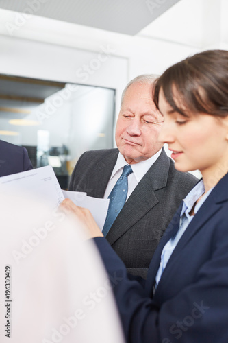 Silhouetten von Geschäftsleuten vor Collage aus vielen Mitarbeiter Portraits