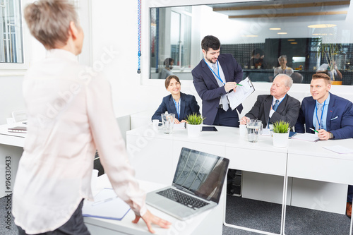 Panorama aus Silhouetten von Geschäftsleuten vor bunten Business Portraits