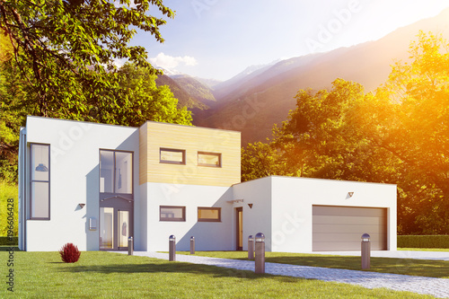 Kubus Hausbau mit Haus und Garage