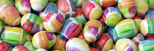 Panorama Banner mit bunten Ostereiern zu Ostern