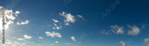 Panoramic view of blue sky with sparse white clouds on a sunny day