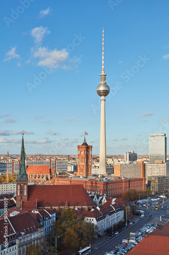 Fernsehturm in Berlin City neben dem Roten Rathaus