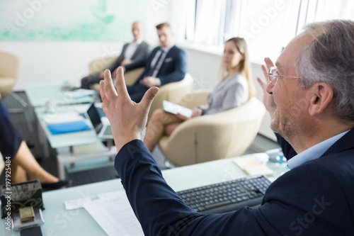 Panorama aus Silhouetten von Geschäftsleuten vor bunten Business Portraits