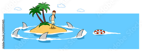 Schiffbrüchiger Mann freut sich über Rettungsring