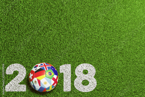 Fußball 2018 in Russland mit Teilnehmer Flaggen