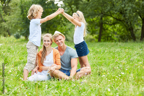 Kinder bauen Dach als Zeichen für ein Eigenheim