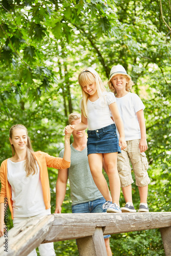 Familie zeigt bunte Zeichnung mit Eigenheim