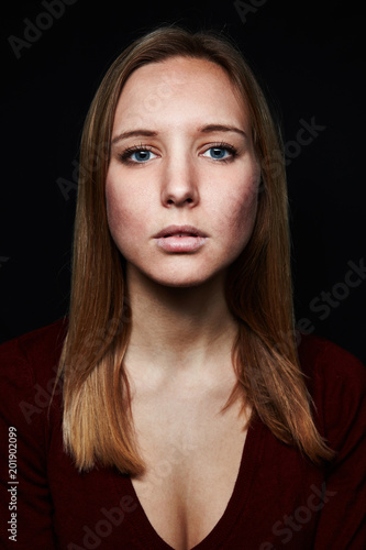Nachdenkliche junge blonde Frau schaut zur Seite