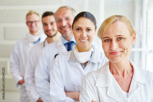 Frau als Ärztin mit Ärzteteam